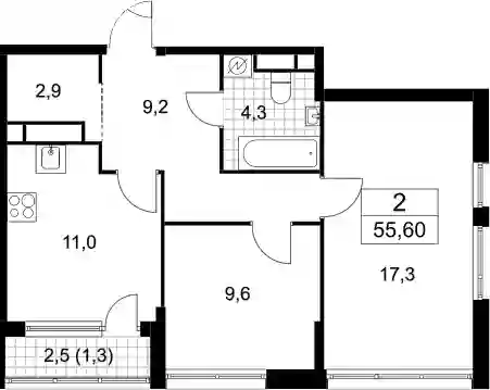 17 585 860 ₽3-к.квартира, 57.2 м², 11 эт.
