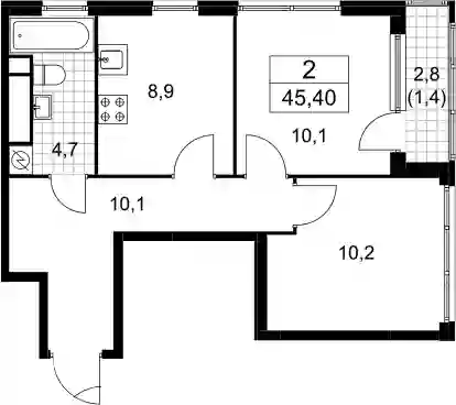 2-к.квартира, 44 м², 30 эт. в ЖК Южные сады Корпус 2.4