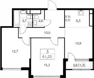 3-к.квартира, 59.9 м², 30 эт. в ЖК Южные сады Корпус 2.4