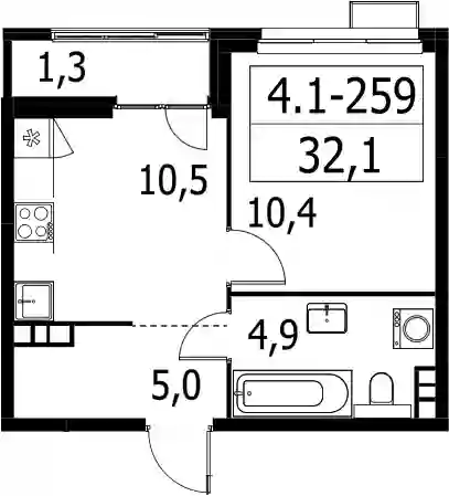 1-к.квартира, 30.8 м², 10 эт. в ЖК Южные сады Корпус 4.1.2