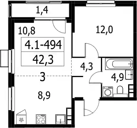 2-к.квартира, 40.9 м², 15 эт. в ЖК Южные сады Корпус 4.1.2