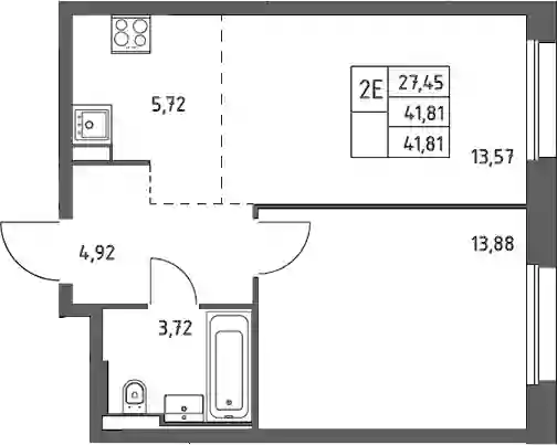 2-к.квартира, 41.81 м², 4 эт. в ЖК Заречье Парк Корпус 4