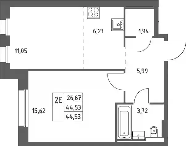 2-к.квартира, 44.53 м², 4 эт. в ЖК Заречье Парк Корпус 4