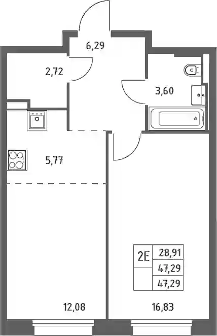 15 929 434 ₽2-к.квартира, 47.2 м², 6 эт.