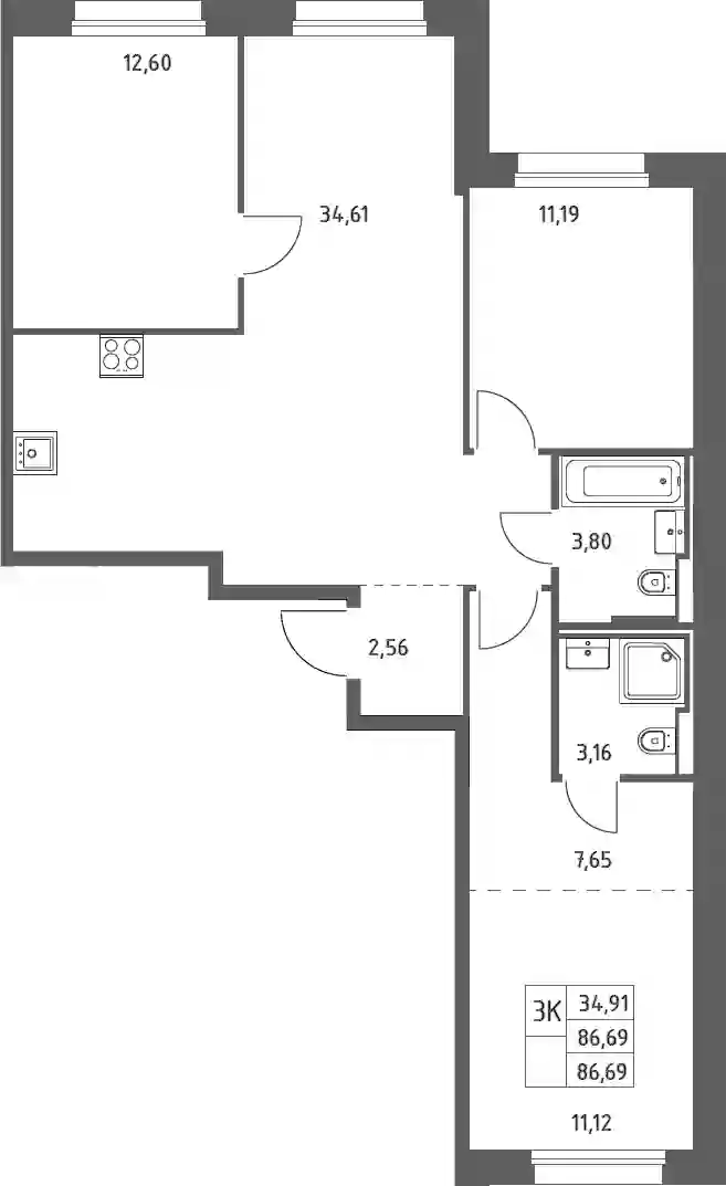 28 684 000 ₽3-к.квартира, 80.8 м², 11 эт.