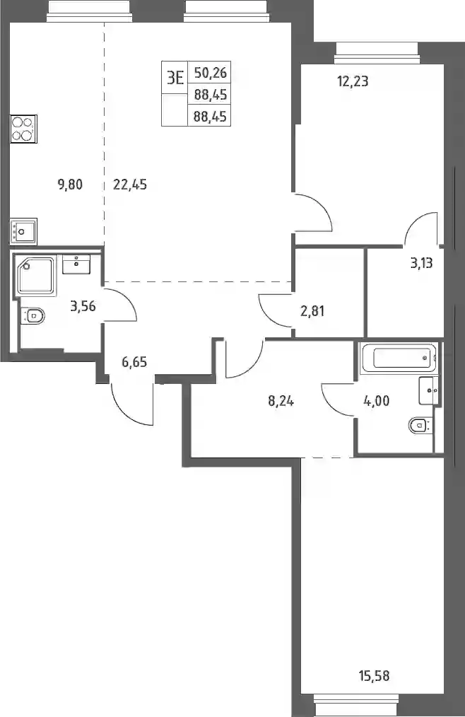 29 653 600 ₽3-к.квартира, 80.8 м², 15 эт.