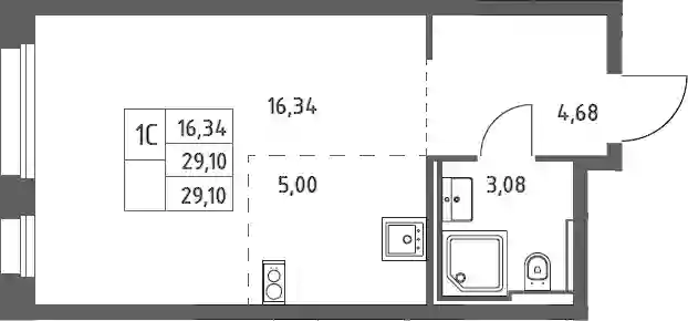 Студия, 29.1 м², 6 эт. в ЖК Заречье Парк Корпус 4