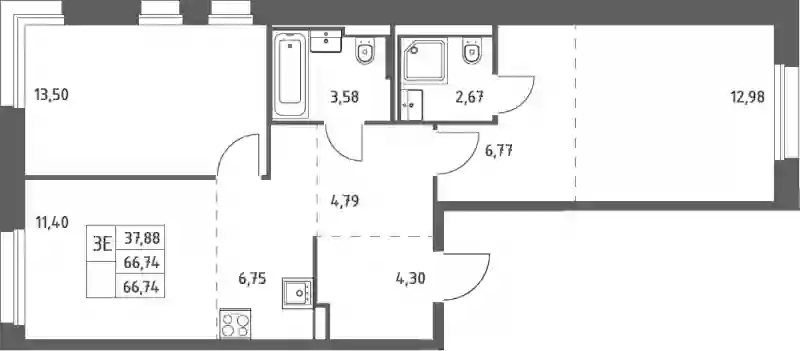 В проекте представлено множество планировочных решений — от студий до просторных 4х-комнатных квартир. Лоты сдаются с чистовой отделкой, увеличенными окнами с угловым остеклением, высотой потолков 3 метра.