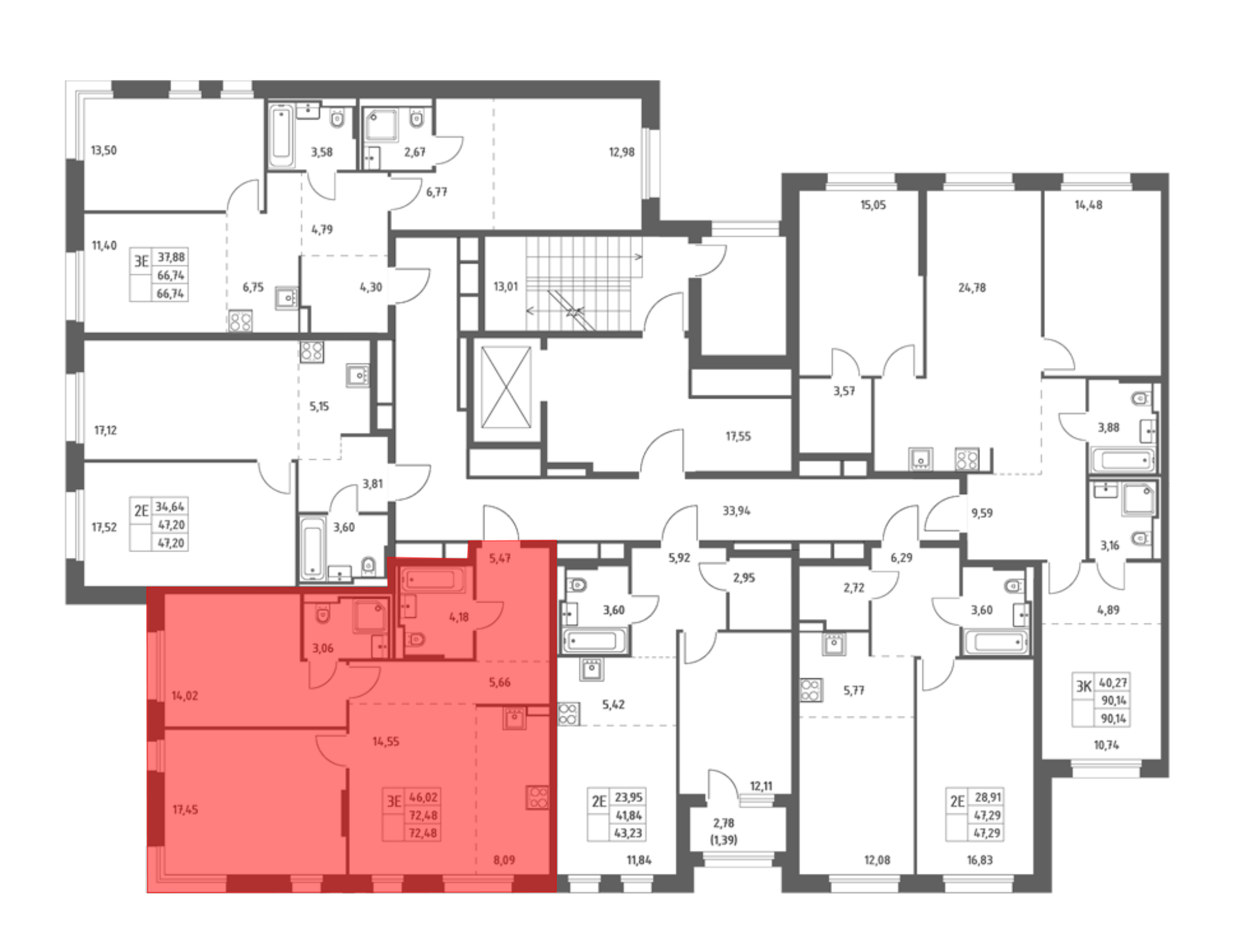 В проекте представлено множество планировочных решений — от студий до просторных 4х-комнатных квартир. Лоты сдаются с чистовой отделкой, увеличенными окнами с угловым остеклением, высотой потолков 3 метра.