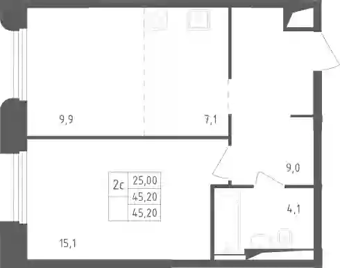 19 355 905 ₽2-к.квартира, 45.3 м², 2 эт.