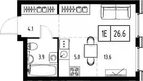 Студия, 26.6 м², 2 эт. в ЖК Заречный квартал Корпус 5
