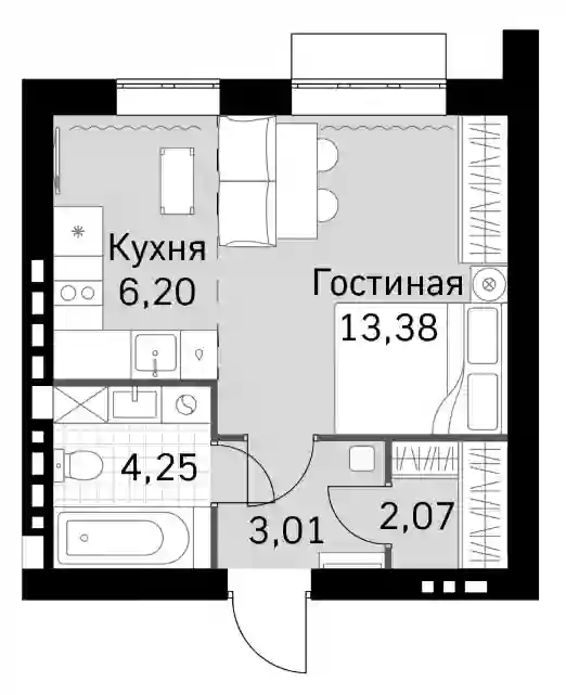 В комплексе предлагаются квартиры с 1–2 комнатами в евроформате с кухней-нишей, а также двухуровневые квартиры с террасой на крыше. Высота потолков в стандартных квартирах составляет 2,68 м, в двухуровневых — 4,78 м. В помещениях установлены увеличенные окна. Жилье передается без межкомнатных перегородок, но с капитальными стенами, входной дверью и остеклением. Подведены коммуникации, электричество заведено до распределительного щитка, установлен котел и радиатор.