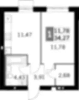 8 858 795 ₽1-к.квартира, 34.27 м², 2 эт.