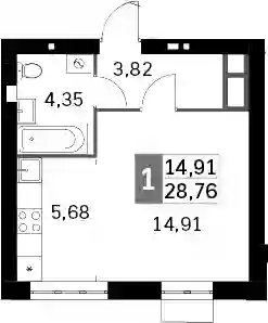 7 328 768 ₽1-к.квартира, 31.59 м², 4 эт.