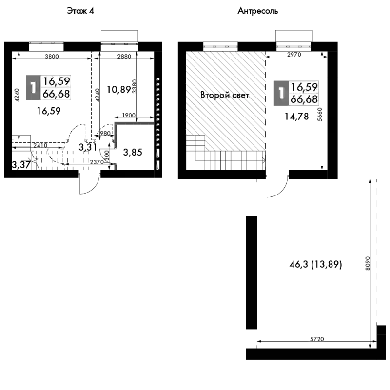 14 196 002 ₽1-к.квартира, 66.68 м², 4 эт.
