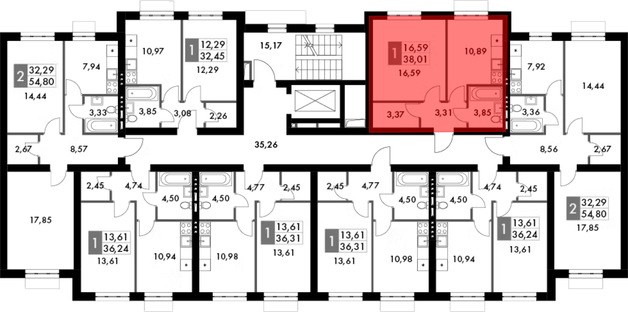 10 820 383 ₽2-к.квартира, 61.18 м², 1 эт.