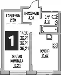 1-к.квартира, 36.21 м², 1 эт. в ЖК Живописный Корпус 1