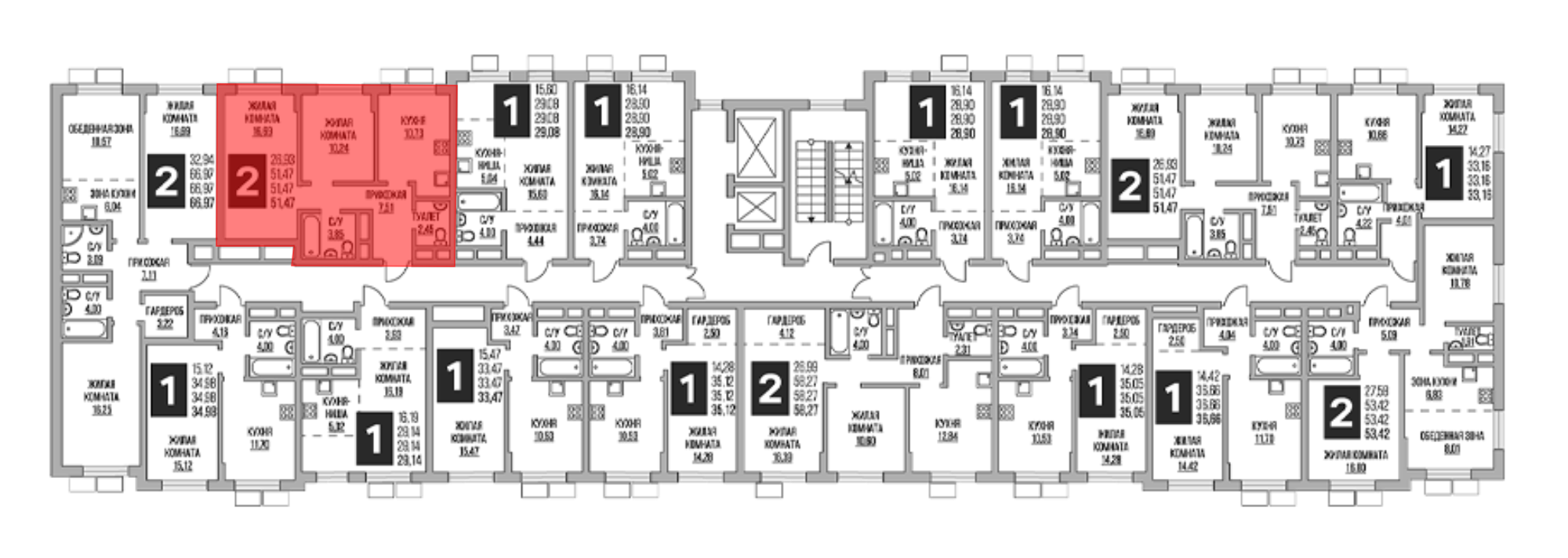 2-к.квартира, 51.47 м², 5 эт. в ЖК Живописный Корпус 1
