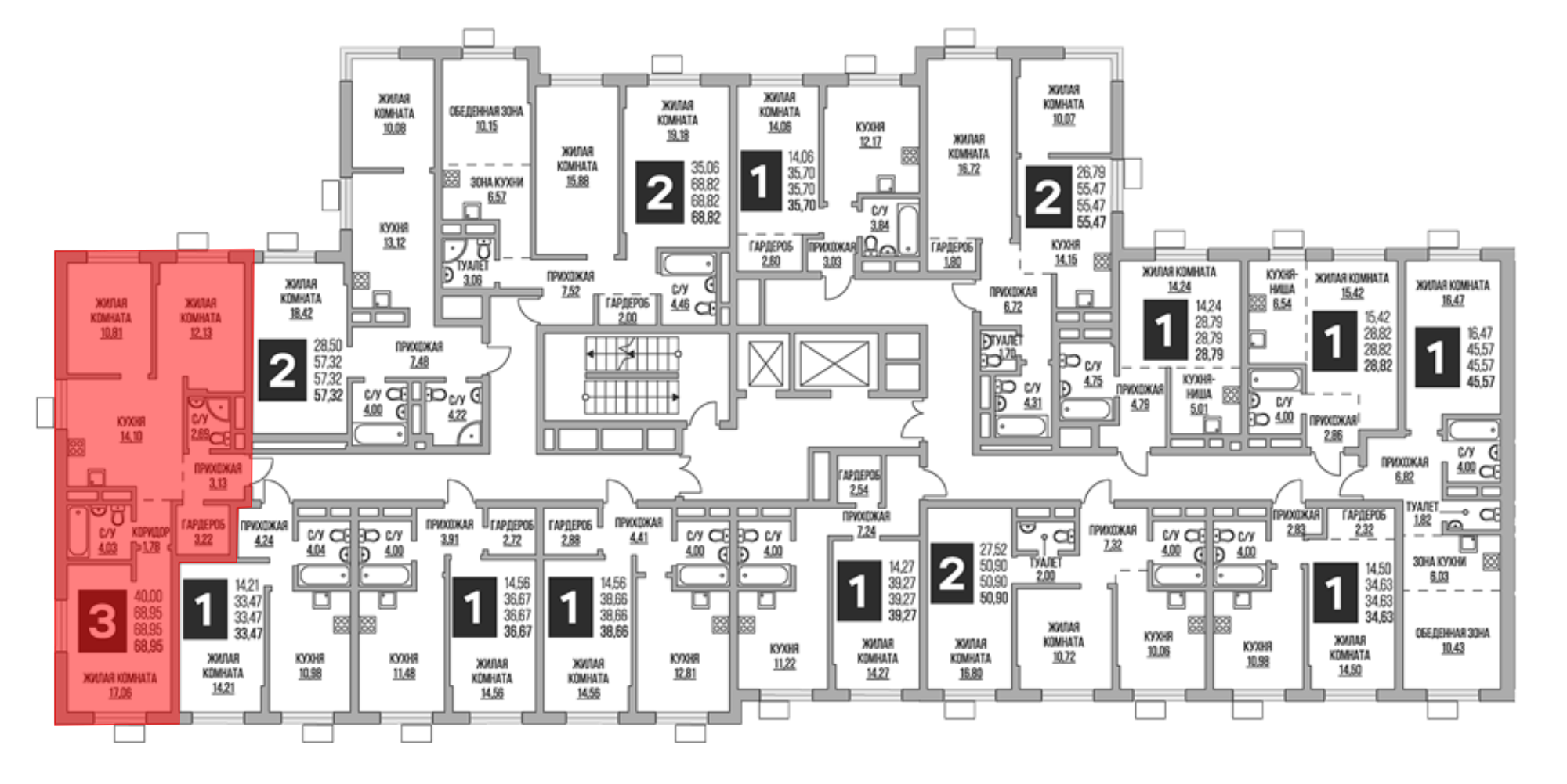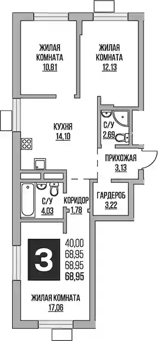 3-к.квартира, 68.95 м², 5 эт. в ЖК Живописный Корпус 1