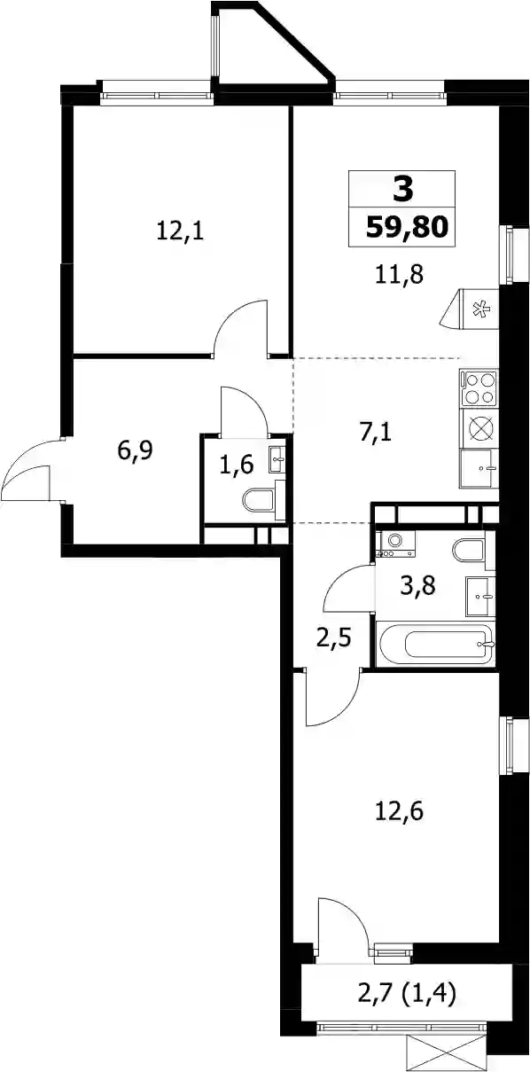3-к.квартира, 58.4 м², 11 эт. в ЖК ЖК Прокшино Корпус 7.1.2