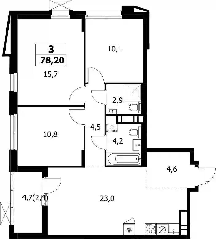 3-к.квартира, 75.8 м², 12 эт. в ЖК ЖК Прокшино Корпус 7.1.3