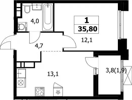 1-к.квартира, 33.9 м², 12 эт. в ЖК ЖК Прокшино Корпус 7.1.4