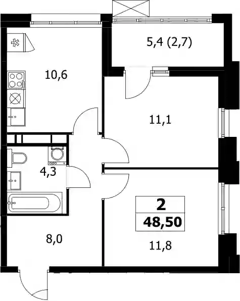 2-к.квартира, 45.8 м², 12 эт. в ЖК ЖК Прокшино Корпус 7.1.4