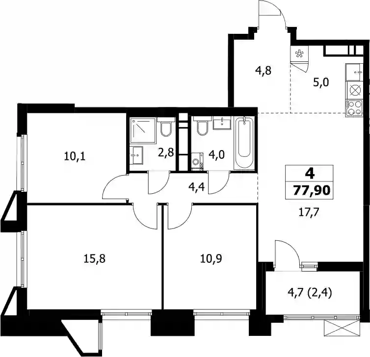 4-к.квартира, 75.5 м², 14 эт. в ЖК ЖК Прокшино Корпус 7.1.4