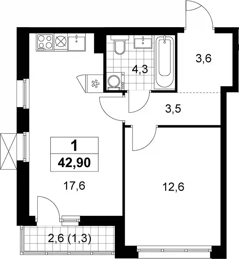 2-к.квартира, 41.6 м², 7 эт. в ЖК ЖК Прокшино Корпус 9.1