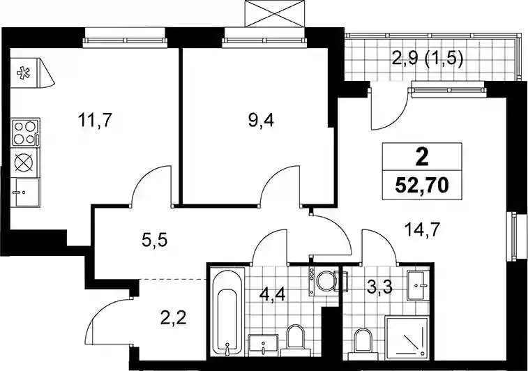 2-к.квартира, 51.2 м², 12 эт. в ЖК ЖК Прокшино Корпус 9.1