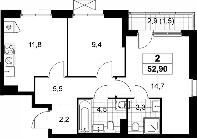2-к.квартира, 51.4 м², 9 эт. в ЖК ЖК Прокшино Корпус 9.1