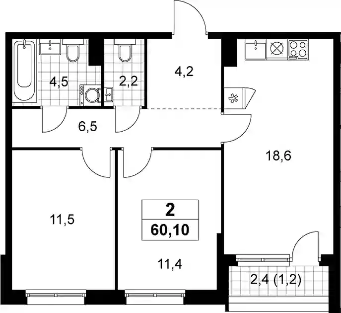 3-к.квартира, 58.9 м², 5 эт. в ЖК ЖК Прокшино Корпус 9.1