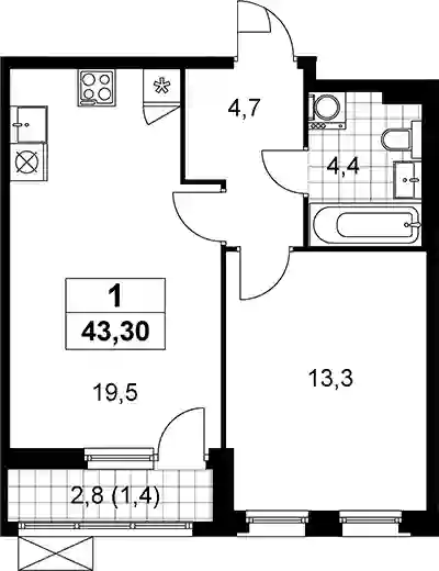 14 439 185 ₽Студия, 28.1 м², 3 эт.