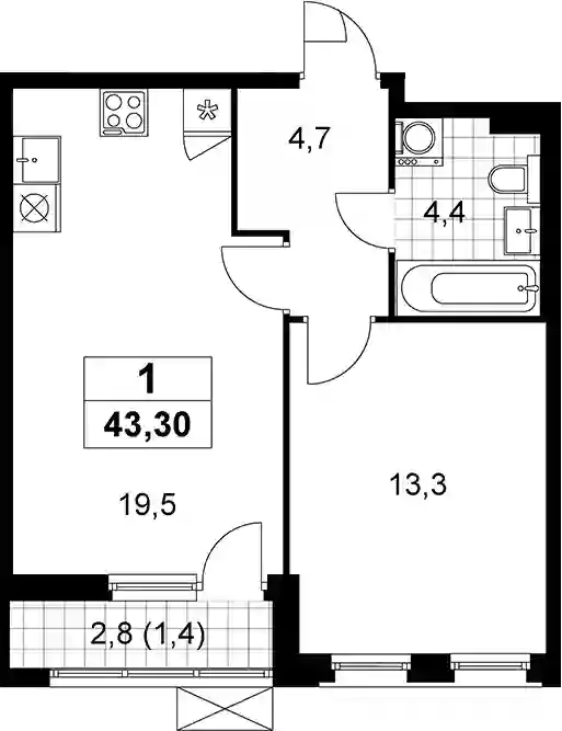2-к.квартира, 41.9 м², 8 эт. в ЖК ЖК Прокшино Корпус 9.2