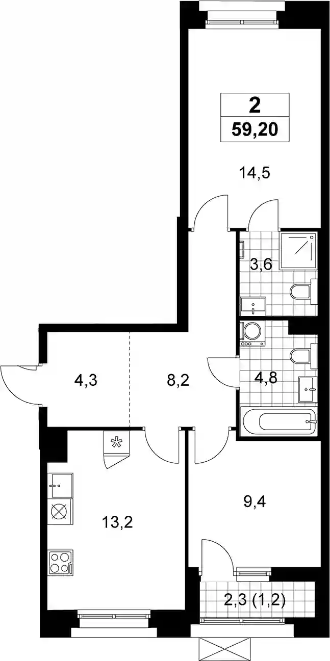 2-к.квартира, 58 м², 7 эт. в ЖК ЖК Прокшино Корпус 9.2
