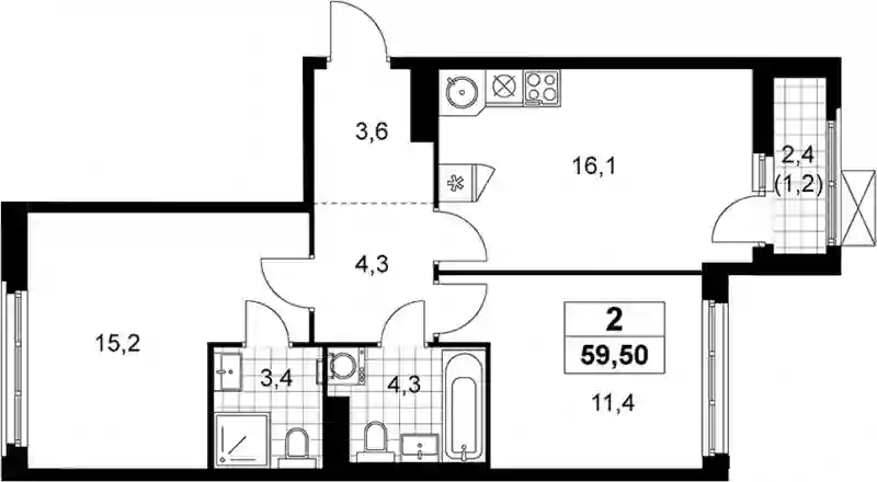 3-к.квартира, 58.3 м², 13 эт. в ЖК ЖК Прокшино Корпус 9.2