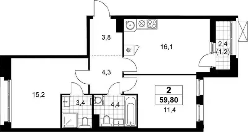 3-к.квартира, 58.6 м², 7 эт. в ЖК ЖК Прокшино Корпус 9.2