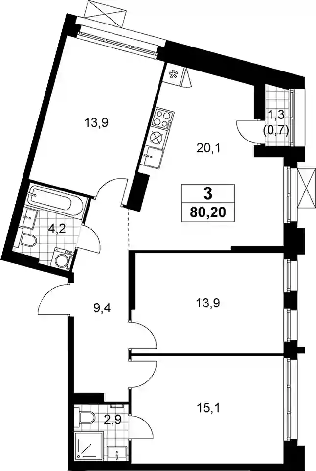 4-к.квартира, 79.5 м², 12 эт. в ЖК ЖК Прокшино Корпус 9.2