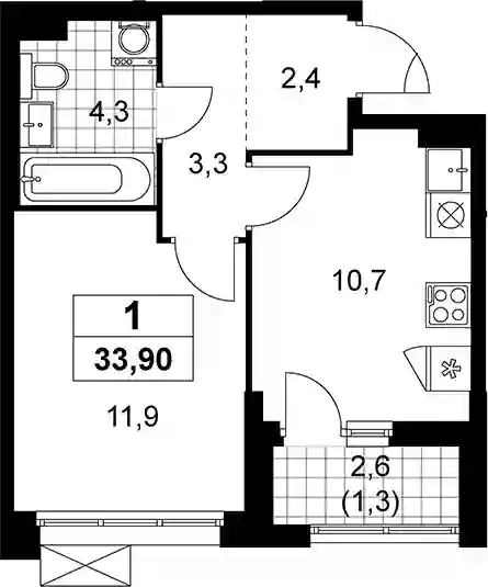 1-к.квартира, 32.6 м², 3 эт. в ЖК ЖК Прокшино Корпус 9.3