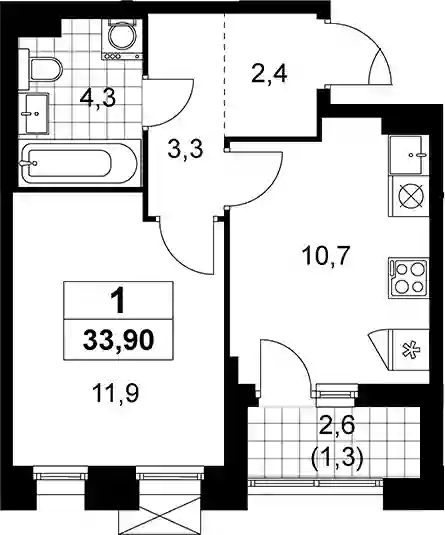 1-к.квартира, 32.6 м², 9 эт. в ЖК ЖК Прокшино Корпус 9.3