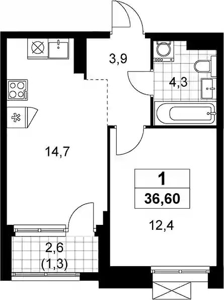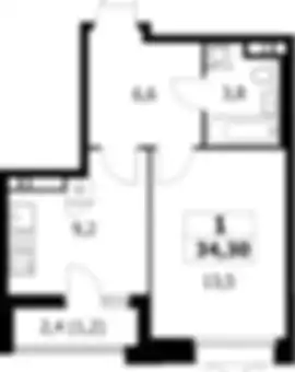 1-к.квартира, 35.3 м², 15 эт. в ЖК ЖК Прокшино Корпус 9.3