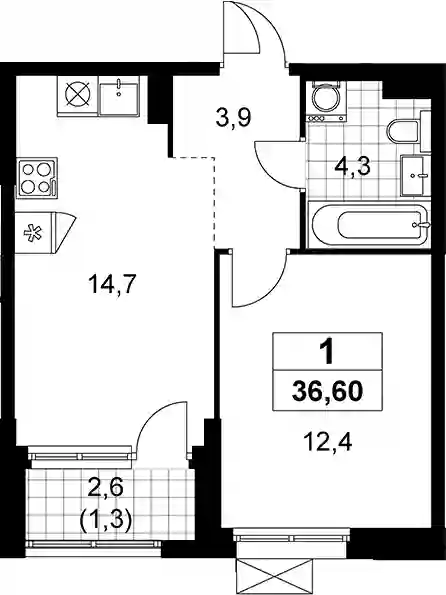 1-к.квартира, 35.3 м², 3 эт. в ЖК ЖК Прокшино Корпус 9.3