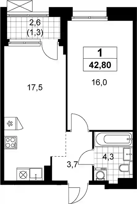 2-к.квартира, 41.5 м², 13 эт. в ЖК ЖК Прокшино Корпус 9.3