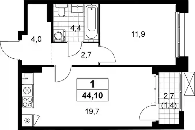 2-к.квартира, 42.7 м², 19 эт. в ЖК ЖК Прокшино Корпус 9.3