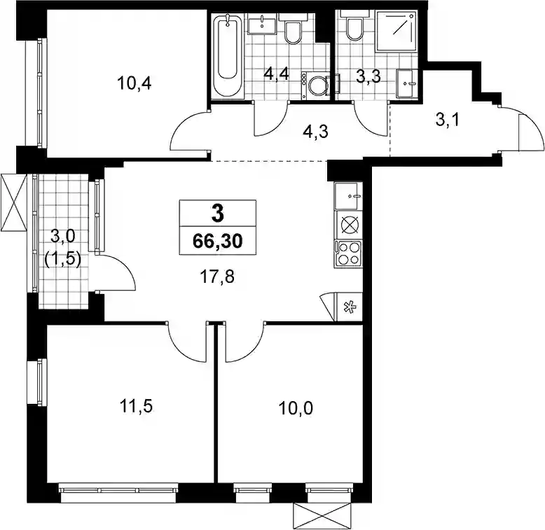 4-к.квартира, 64.8 м², 12 эт. в ЖК ЖК Прокшино Корпус 9.3