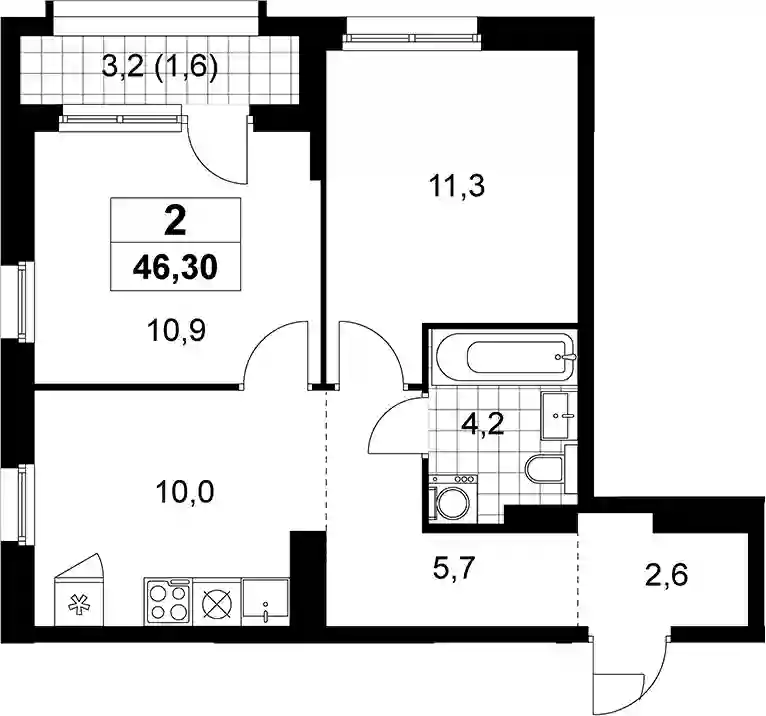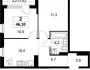 2-к.квартира, 44.7 м², 14 эт. в ЖК ЖК Прокшино Корпус 9.4