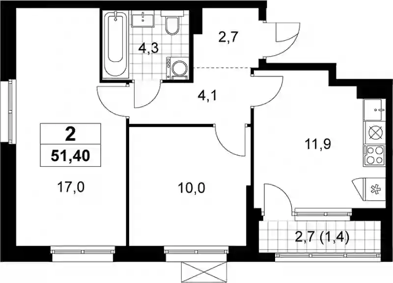 2-к.квартира, 50 м², 9 эт. в ЖК ЖК Прокшино Корпус 9.4