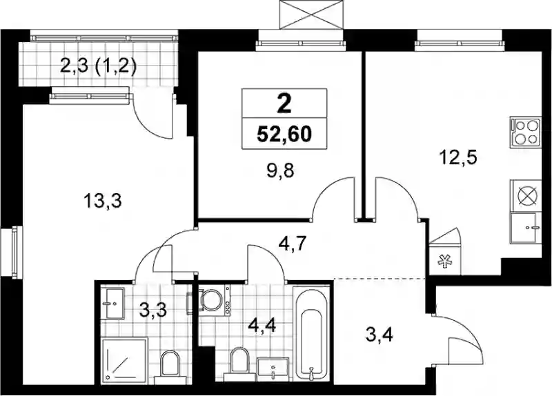 2-к.квартира, 51.4 м², 4 эт. в ЖК ЖК Прокшино Корпус 9.4