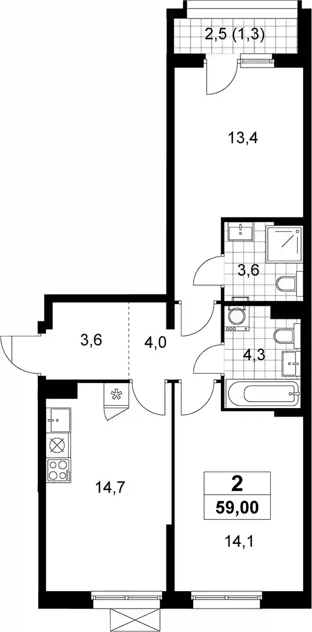 2-к.квартира, 57.7 м², 7 эт. в ЖК ЖК Прокшино Корпус 9.4