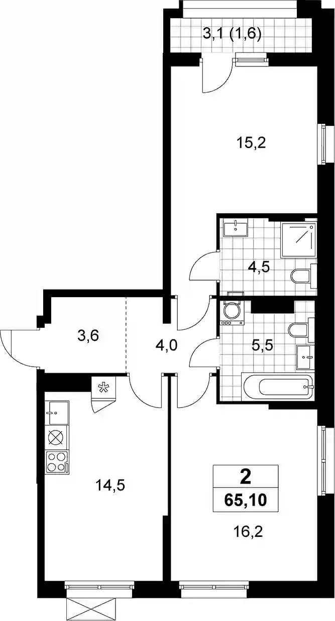 2-к.квартира, 63.5 м², 14 эт. в ЖК ЖК Прокшино Корпус 9.4